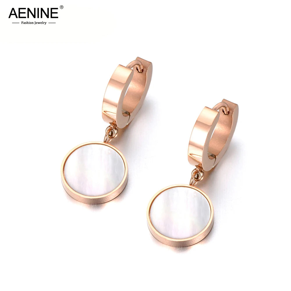 AENINE Trendy White Shell & Black Acrylic 2 Color Earrings 316L Stainless Steel Jewelry Christmas Party Anniversary Gift AE18042