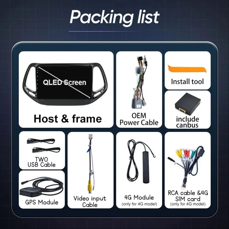 Android 14 For Jeep Compass 2 MP 2016 2017 2018 2019 Car Radio Stereo Multimedia Navigation GPS Auto Radio Player Carplay Screen