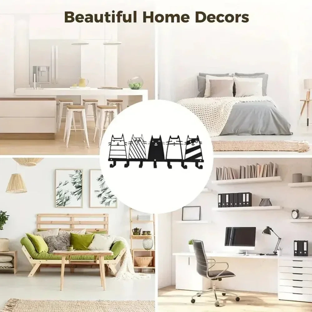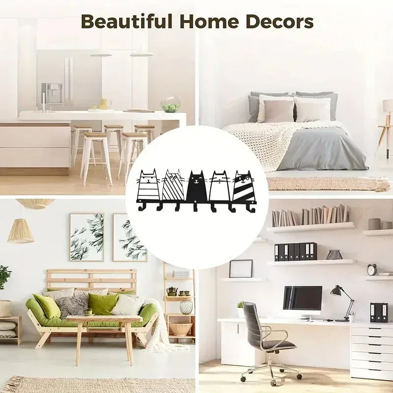 Cute Cat Decorative Hook, 7 Hooks Key Hook Rack, Modern Coat Rack, Cat Decor Wall Mounted Coat Rack Coat Hanger Key Holder