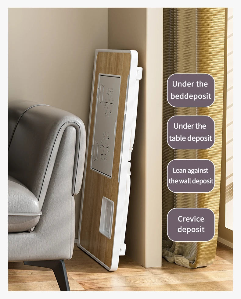 Foldable Laptop Bed Desk] Portable Adjustable Height Foldable Laptop Bed Desk with Wooden Surface - Storage Slots & Drawers for